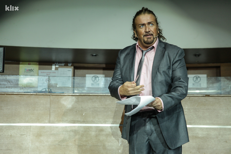 Satirična monodrama odigrana u jeku predizborne kampanje je rađena prema djelu bh. pisca, scenariste, reditelja i kompozitora Envera Puške.